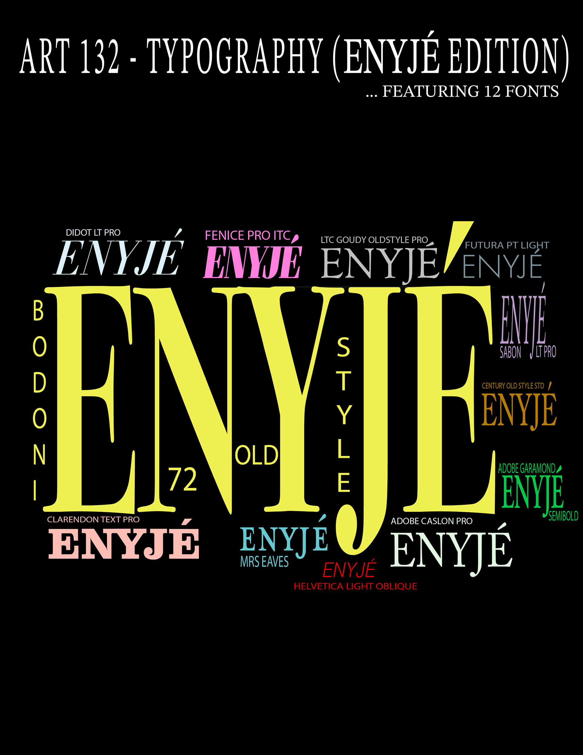 project: create a poster of your name in 12 different fonts