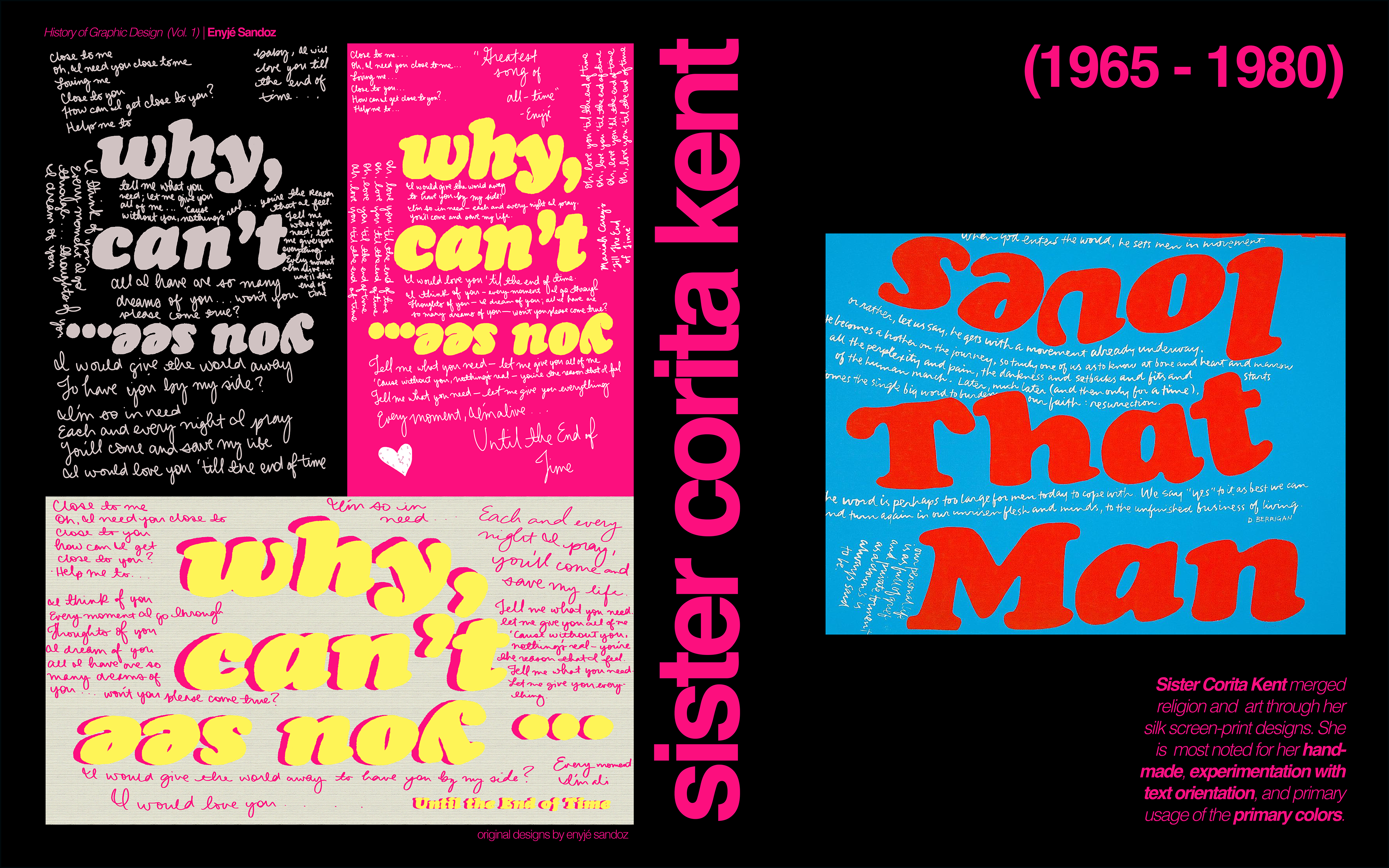 Project: Choose a song lyric, poem, scripture, political statement, etc., and compose a project in the style of sister Corita Kent.